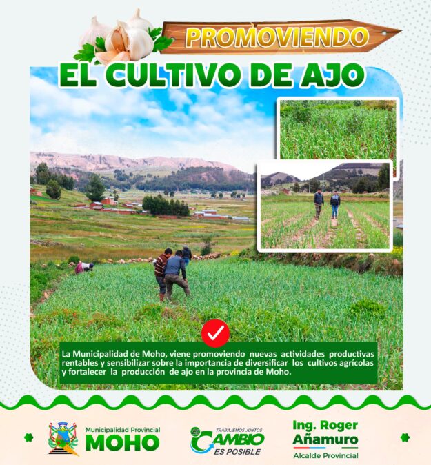 MUNICIPALIDAD PROVINCIAL DE MOHO PROMUEVE EL CULTIVO DE AJO PARA EL DESARROLLO AGRÍCOLA