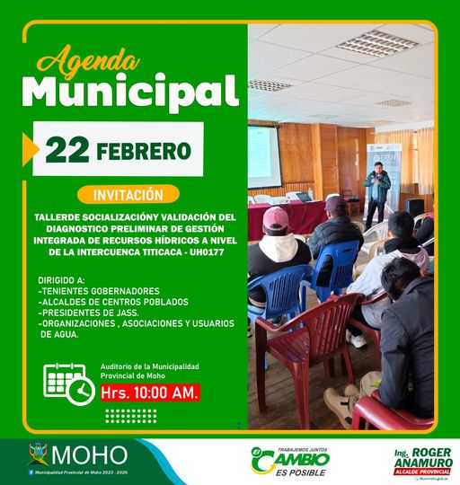 la Municipalidad Provincial de Moho y la Agencia Agraria San Pedro de Moho, viene organizando el Evento de capacitación denominado: «CAPACIDADES EMPRESARIALES, RIEGO TECNIFICADO EN LOS CULTIVOS DE AJO Y FRESA EN LA PROVINCIA DE MOHO, dirigido a las asociaciones y productores agropecuarios en general de la provincia de Moho, por lo cual aprovechamos invitarlo…